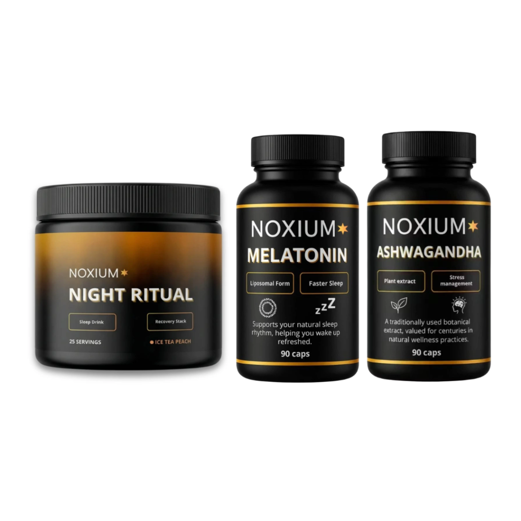 Night Ritual a Ashwagandha jsou jádro tohoto balíčku. Night Ritual obsahuje 8 účinných složek, které podporují hluboký spánek a regeneraci. Ashwagandha podporuje zklidnění mysli před spaním. Společně tvoří kompletní večerní rituál. Bezpečný, bez sedativ, bez návykovosti, navržený pro všechny věkové skupiny dospělých.